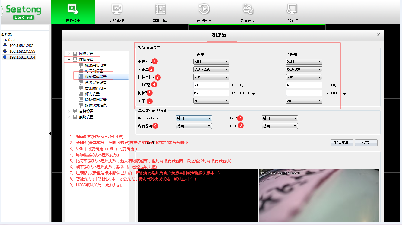 访问IPC的IP,进去配置管理-媒体设置-视频编码设置,将需要更改的参数修改即可。